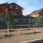 Выполнение работ по укладке рулонного газона и посадке плодовых и декоративных деревьев и кустарников.